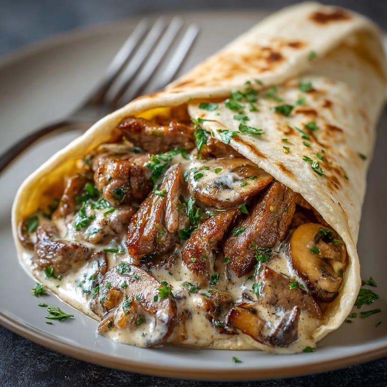 Pin This hearty beef stroganoff wrap recipe transforms a classic Russian dish into an affordable, portable meal perfect for busy weeknights. The tender beef strips and savory mushroom sauce wrapped in soft tortillas deliver all the comfort of traditional stroganoff without the fuss or expense of serving it over noodles.
