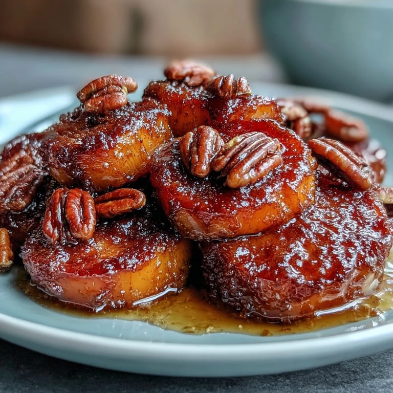 Pin The secret to this recipe's magic lies in the glaze. Unsalted butter, packed light brown sugar, pure maple syrup, cinnamon, and a whisper of nutmeg melt together into a sauce that bubbles and thickens around the yams as they bake. The foil-covered first bake steams the yams to tender perfection, while the uncovered finish lets the glaze concentrate and cling to every round. A final shower of pan-toasted pecans adds the crunch that turns a good dish into an unforgettable one.
