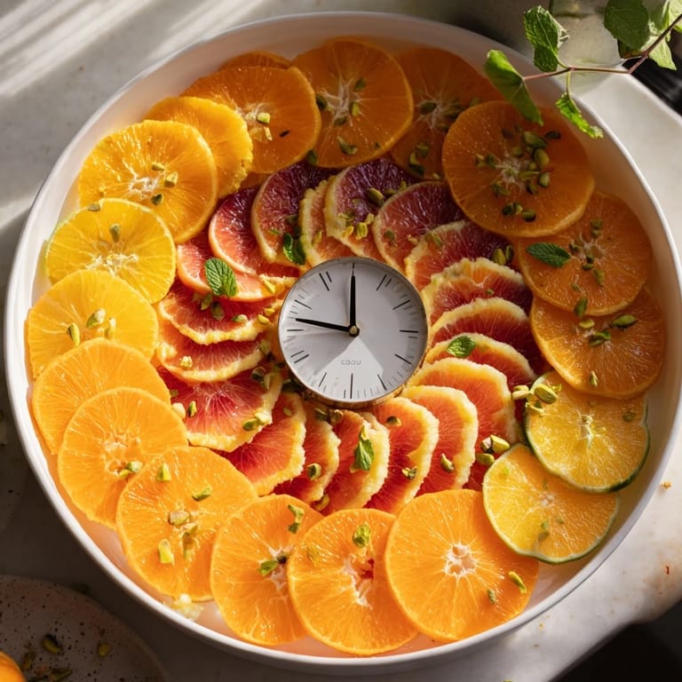 The secret to making this look effortless is actually spending the first two minutes looking at your platter and imagining the clock. I've learned to start at 12 and work my way around, but some people prefer to scatter everything loosely first and then adjust—there's no wrong way. What matters is that you're thinking about color flow; no two of the same citrus type should sit next to each other, and your eyes should travel smoothly around the whole thing without getting stuck.