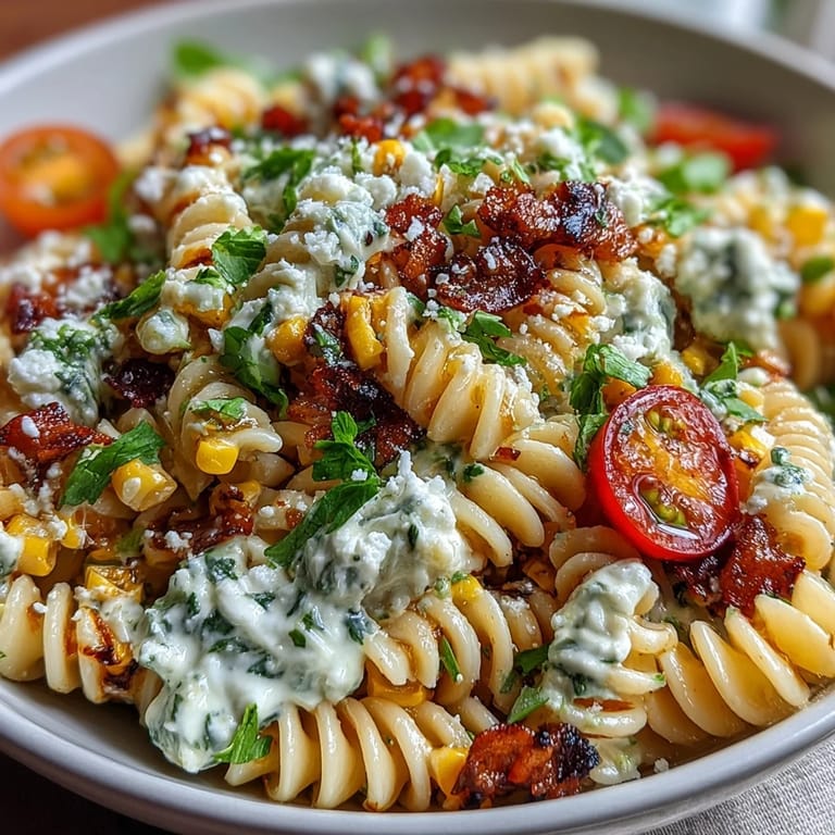 Pin I discovered this pasta salad on a sweltering afternoon when my neighbor brought over fresh corn from the farmers market and challenged me to do something beyond the usual street corn. While charring those kernels in a hot skillet, the kitchen filled with this incredible toasted sweetness that made me rethink everything I thought I knew about corn salads. That first bite—tangy lime, creamy without mayo, cotija cheese crumbling on my tongue—felt like a revelation. Now it's what I make whenever someone asks what's for dinner and the weather won't stop being unbearably hot.