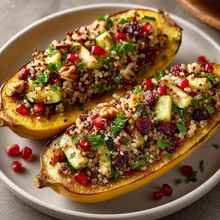- Transfer the stuffed squash to plates and scatter with more chopped parsley or a sprinkle of pomegranate seeds if you like. Serve warm and enjoy the colors and aromas at your table.