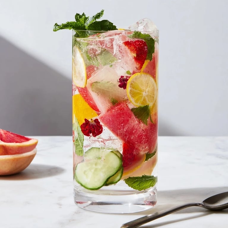 Pin Refreshing water-based mocktails blend flavored enhancers, fresh fruit, and herbs for a hydrating alternative to sugary drinks. These beverages are perfect for anyone seeking vibrant flavors without extra calories or sugar.