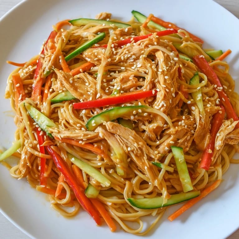 The structure of this salad is flexible enough that you can play around with what you have on hand without losing what makes it work. I've added snap peas for extra crunch, thrown in shredded cabbage when I didn't have cucumber, and even used leftover grilled shrimp instead of chicken when I was feeling fancy. The dressing is the constant that ties everything together, so as long as you nail that combination of sesame oil, soy, vinegar, and that silky peanut butter base, you'll always end up with something delicious.