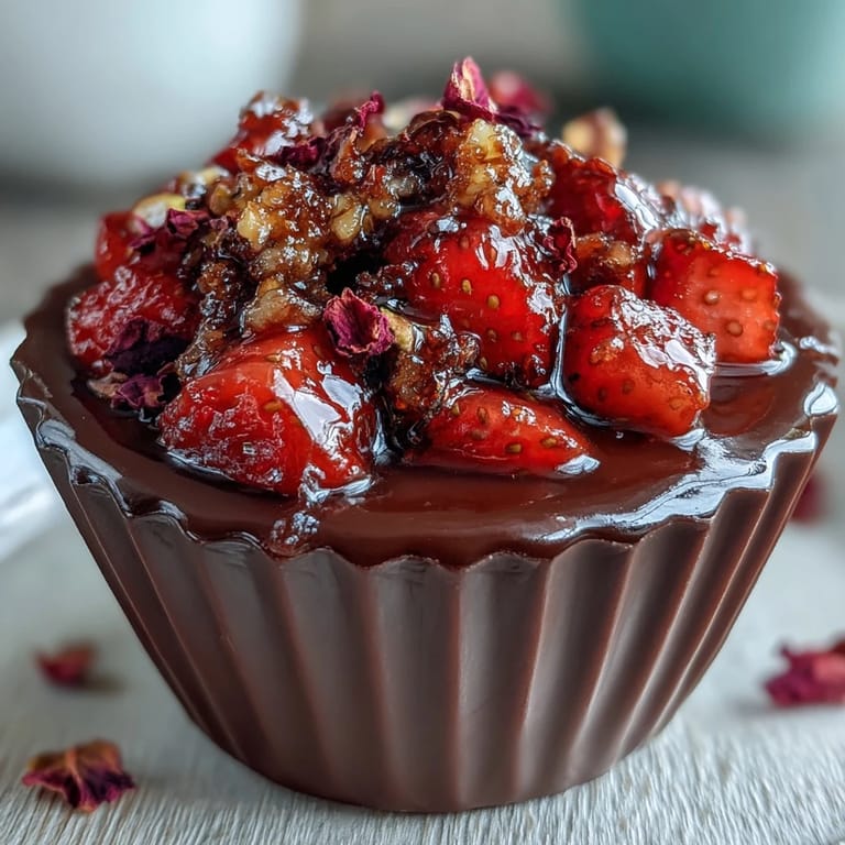 Pin My friend brought back a box of these from Dubai, and I watched her carefully unwrap the tissue paper like she was revealing something sacred. The dark chocolate shell caught the light, and when she cracked into one, the strawberries glistened with a subtle floral shimmer I'd never seen before. That single bite—the snap of chocolate, the burst of rosewater-kissed fruit, the crunch of caramelized pistachios—made me realize I had to learn how to make them at home. It took a few attempts in my kitchen, some sticky fingers, and one memorable moment when I burned the pistachio caramel while distracted by a phone call, but now I've got it down to a quiet art.