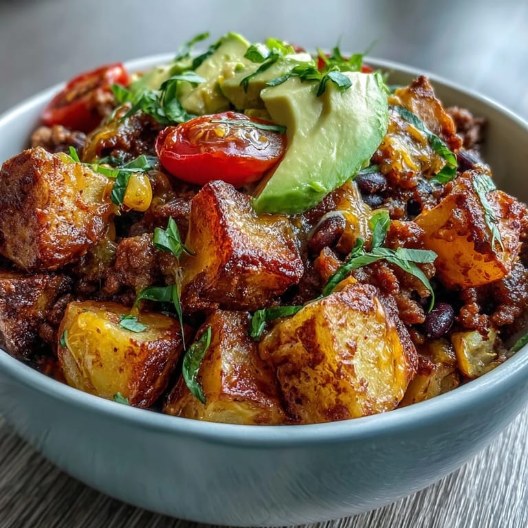 Last winter my partner caught me eating this straight from the serving bowl at 11 PM because I couldnt resist the leftovers. That crunchy potato against warm spiced meat and cool avocado hits something primal. Now I always make extra just for those midnight moments.