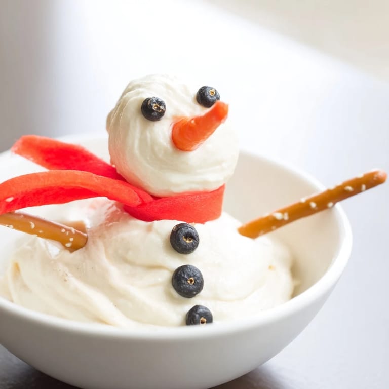 Pin A playful and creamy appetizer featuring a festive melted snowman made of cheese and yogurt, perfect for holiday gatherings and sure to delight kids and adults alike.
