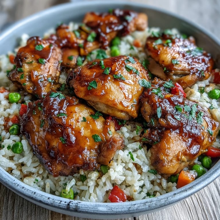 Pin Last Tuesday, I stood in my kitchen staring at a chaos of ingredients after back-to-back meetings, craving something comforting but refusing to surrender to takeout. That's when I threw everything into one pan—chicken, rice, whatever veggies were in the freezer—and let them become something greater together. The smell of honey and BBQ sauce bubbling away filled the entire house, and suddenly my chaotic evening felt cozy.