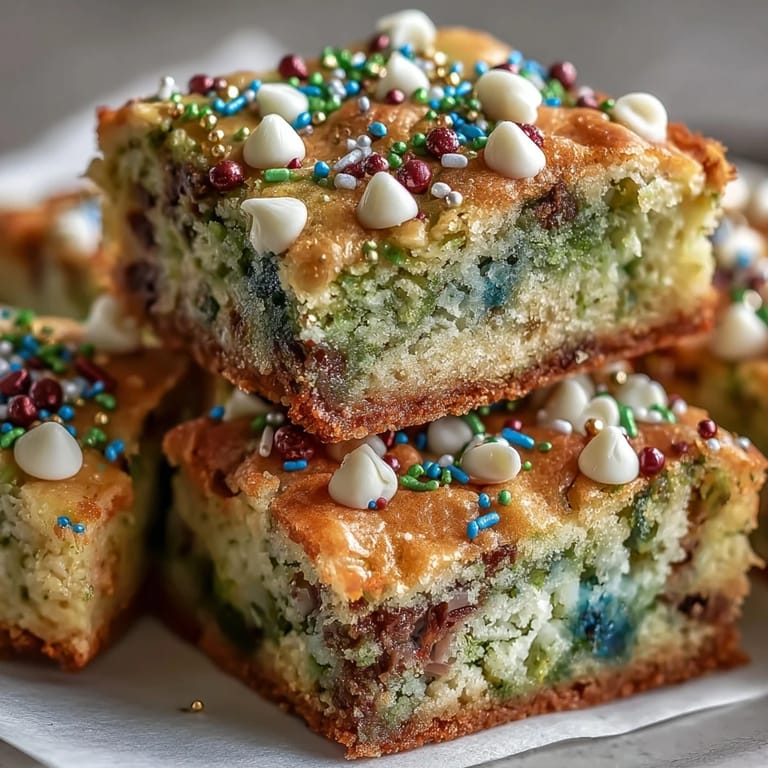 Pin My neighbor knocked on the door two days before St. Patrick's Day with a box of green and gold sprinkles she'd found on clearance, asking if I wanted them before she tossed them. I stared at those rainbow bits and suddenly had the urge to bake something that felt like a party in bar form. These cookies happened almost by accident—buttery, studded with white chocolate, and so vibrant they practically glow on a plate. They're the kind of dessert that makes people smile before they even taste them.